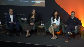 This executive-level panel featured Davide Stronati (Nuclear Decommissioning Authority), Hilary Tam (Amazon Web Services), Olivia Ruggles-Brise (BCD Travel), and Tom Salisbury (GKN Automotive).